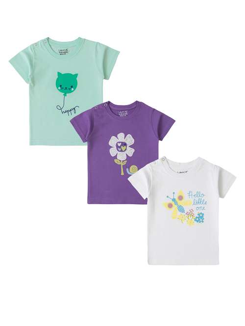 girls round neck front printed set of 3 regular tee - 21338796 - Very Small Image - 1
