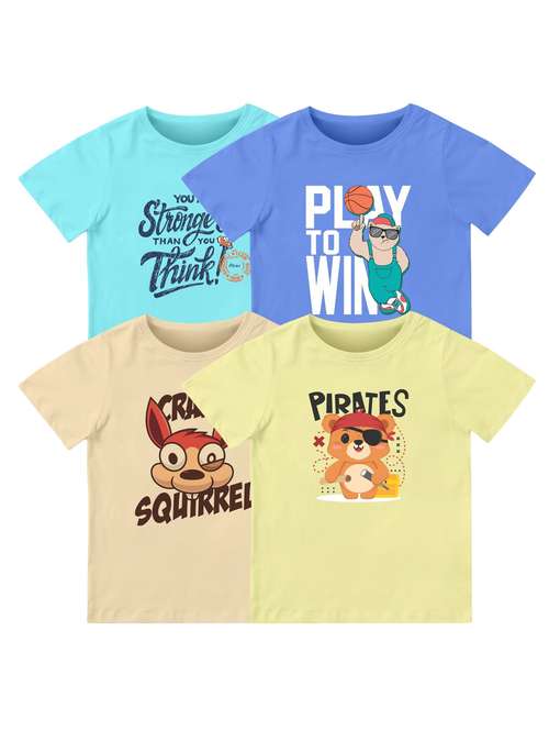 boys pack of 4 front print t-shirt - 21589714 - Very Small Image - 1