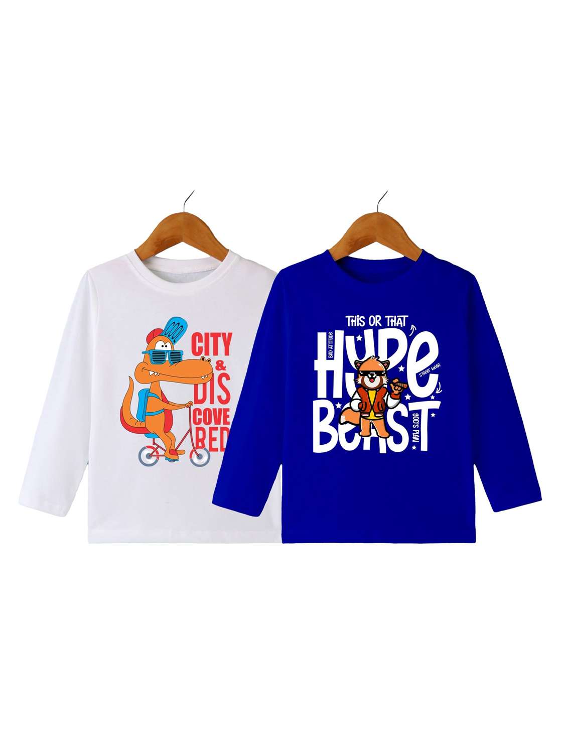 boys pack of 2 printed round neck long sleeve t-shirts
