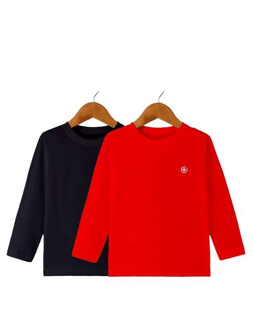 boys pack of 2 plain round neck long sleeve t-shirts