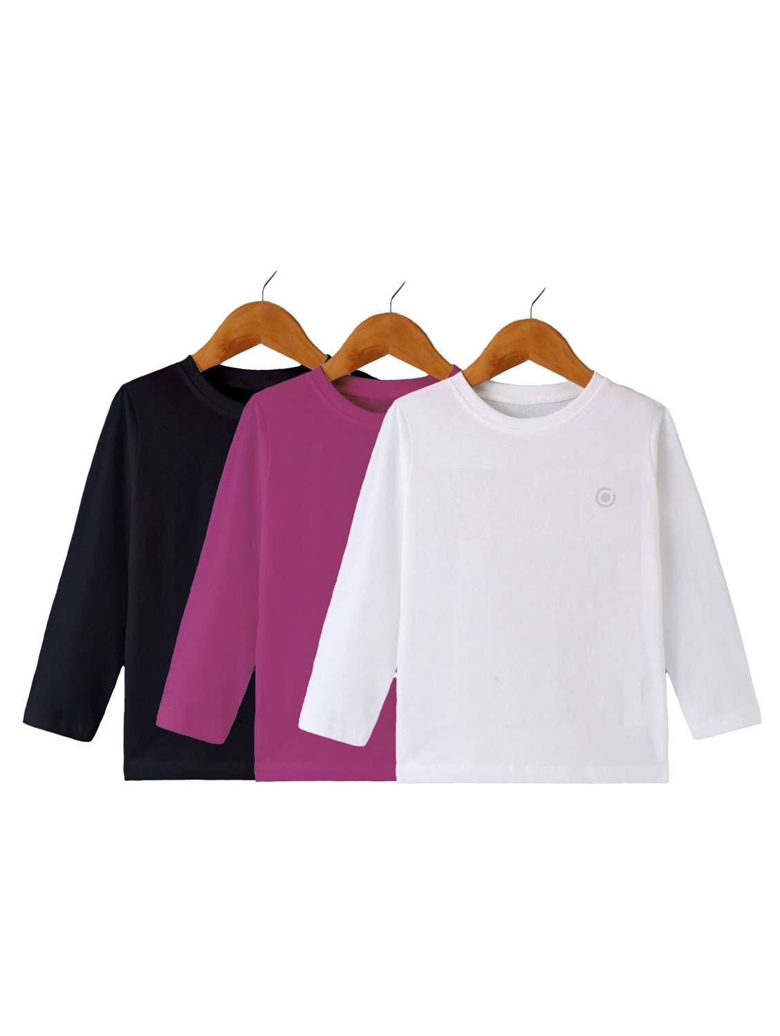 boys pack of 3 plain round neck long sleeve t-shirts