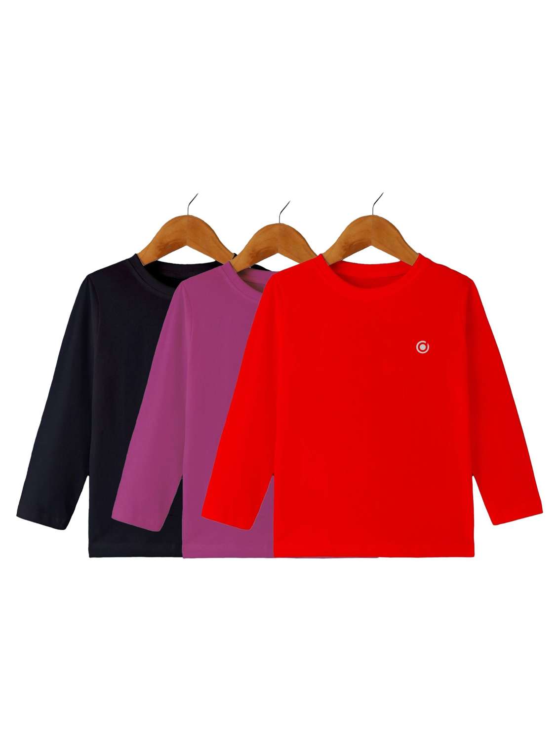 boys pack of 3 plain round neck long sleeve t-shirts