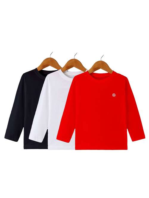 boys pack of 3 plain round neck long sleeve t-shirts - 21589883 - Very Small Image - 1