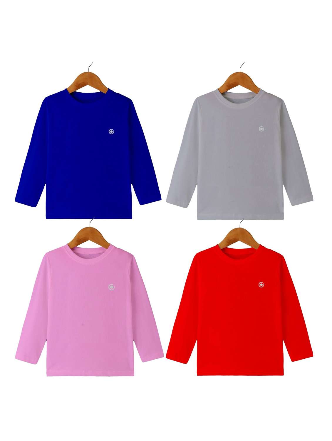 boys pack of 4 plain round neck long sleeve t-shirts
