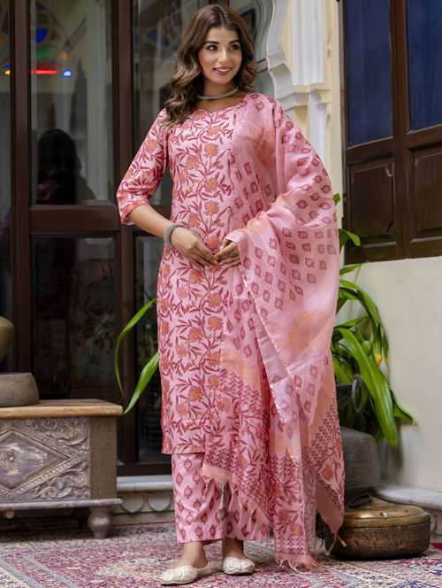 - Find gorgeous sets of ethnic wears in trending designs in pink colors suitable for casual wear of occasions.
