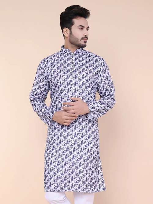 Printed Mandarin Neck Cotton Regular Fit Kurta