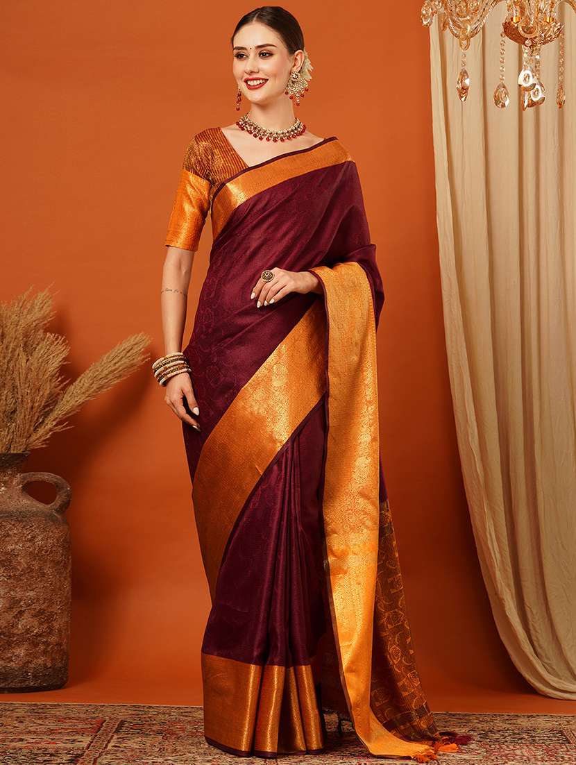 - » women solid bordered saree