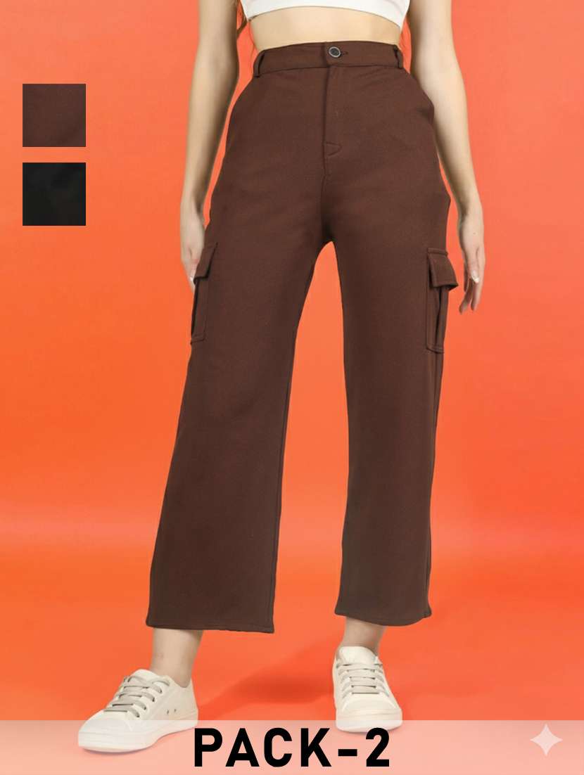 women pack of 2 solid high rise relaxed fit cargo