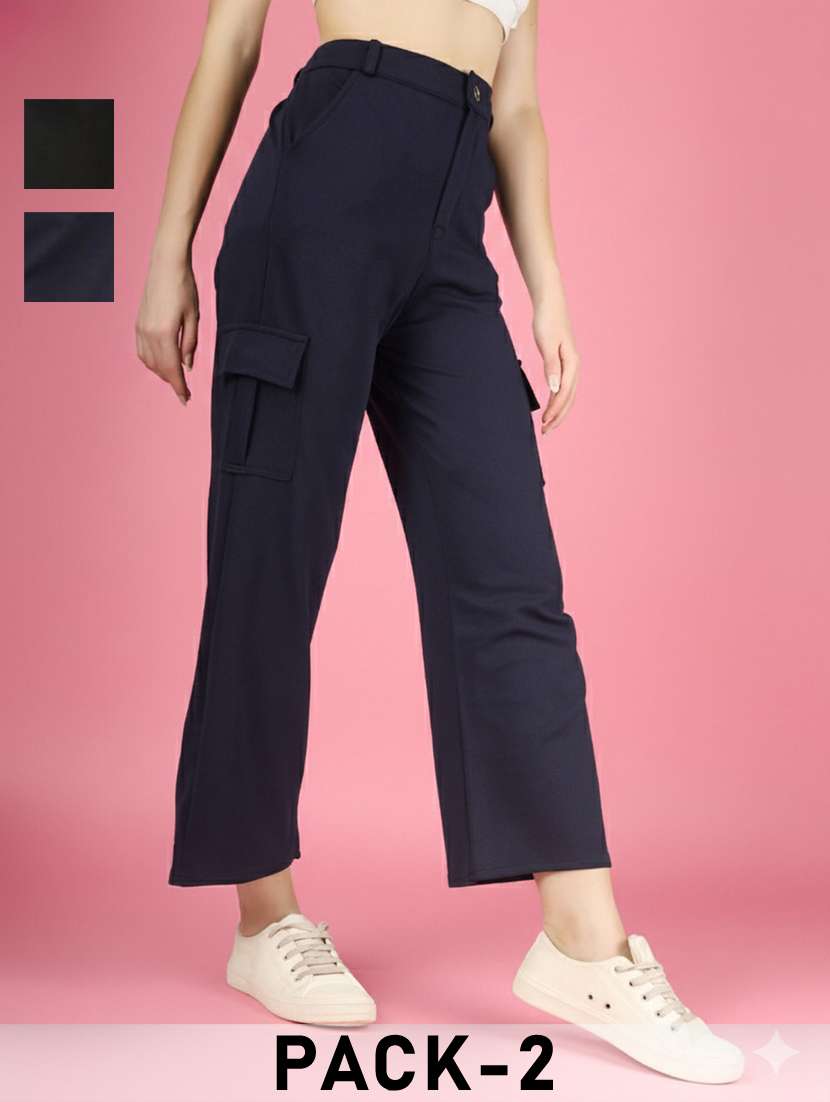 women pack of 2 solid high rise relaxed fit cargo