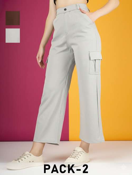 women pack of 2 solid high rise relaxed fit cargo