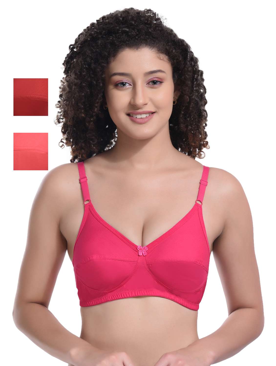 Bodyaan Non padded Full coverage Wire free 30B Size Pure Cotton Bra for Women Pack of 3