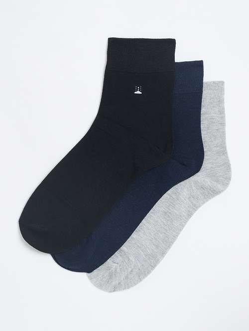 Elevate your everyday comfort with this essential pack of three ankle length cotton socks in versatile black, navy, and grey colours. These classic socks feature a ribbed design that ensures they stay perfectly in place throughout the day. The cotton-rich fabric blend provides excellent breathability and moisture management, making them ideal for daily wear. The ankle length design sits comfortably at ankle, offering traditional coverage that works well with both formal and casual footwear. The reinforced toe and heel areas enhance durability, while the smooth seams prevent irritation during extended wear. Perfect for office, casual outings, or everyday activities, these socks offer the ideal combination of comfort, style, and practicality. The subtle branding detail adds a refined touch to these wardrobe essentials. Available in a convenient pack of three, these socks are easy to care for and maintain their shape and colour through regular washing.