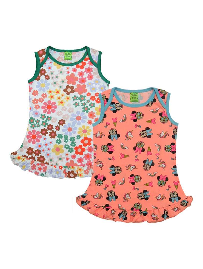 - » girls round neck printed frock combo