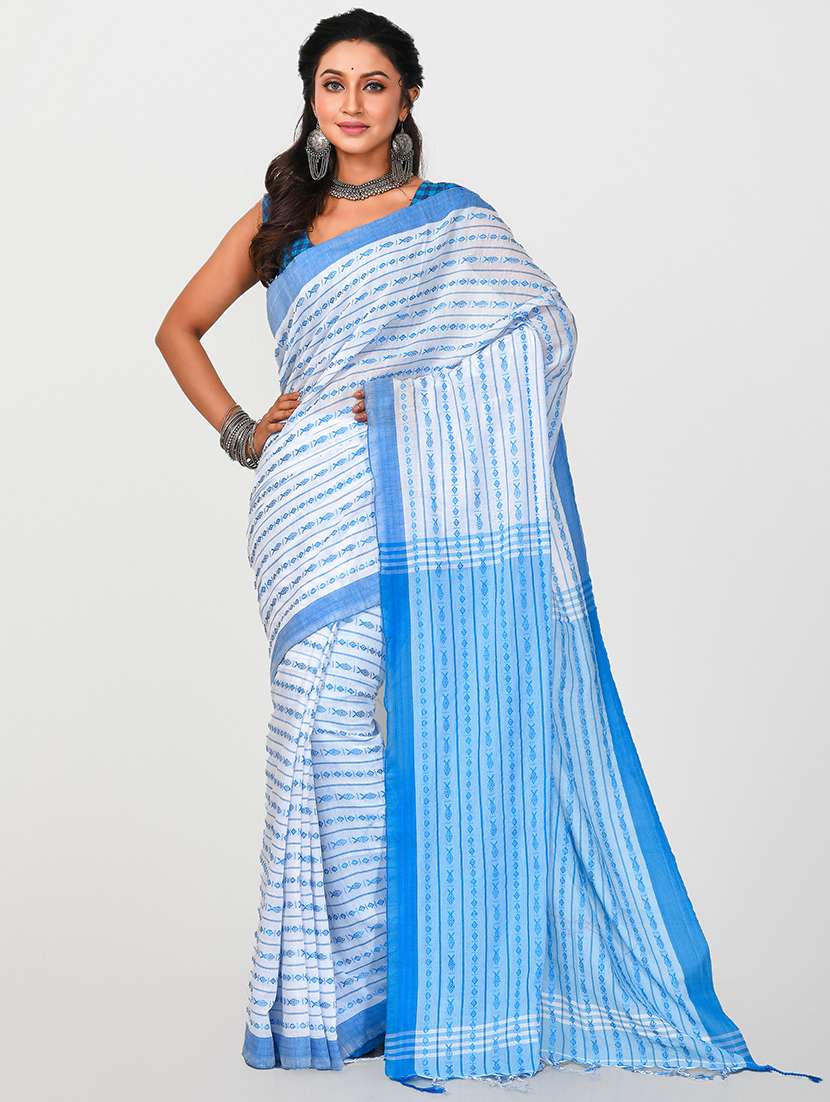women light blue self design handloom saree with blouse - 20614310 -  Standard Image - 1 women light blue self design handloom saree with blouse - 20614310 -  Zoom Image - 1