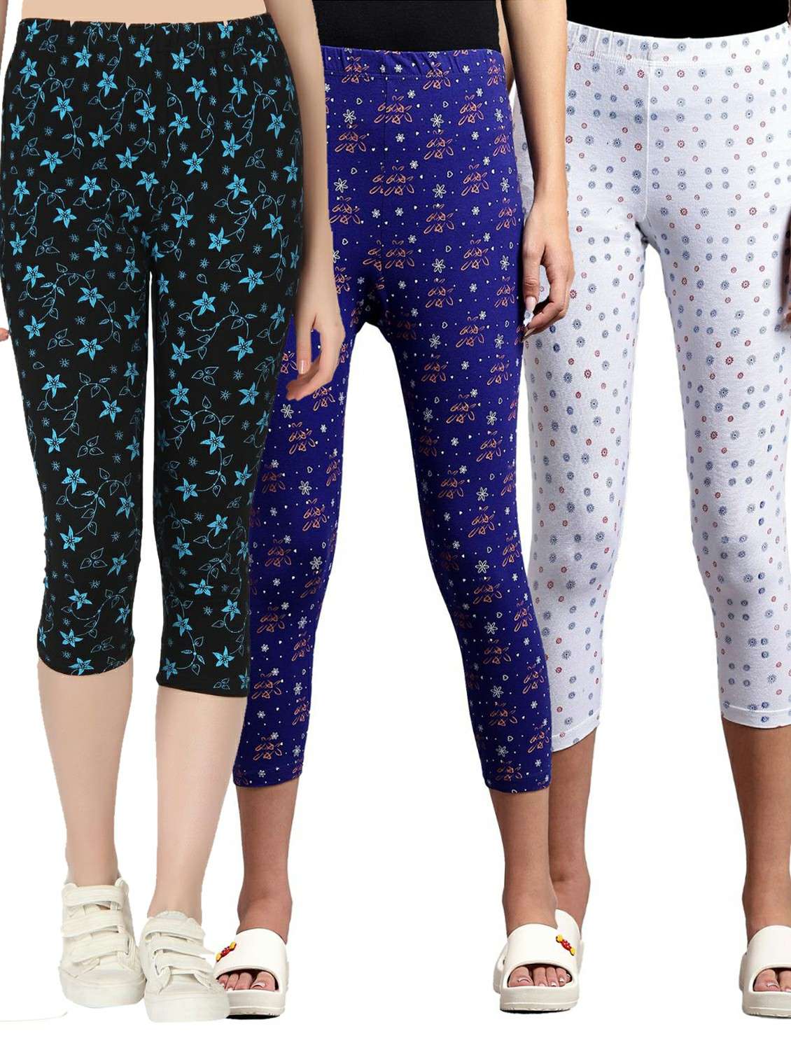 pack of 3 multi colored printed mid rise capri