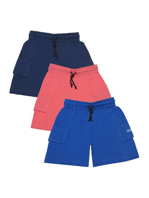 boys pack of 3 solid drawstring shorts with double pockets