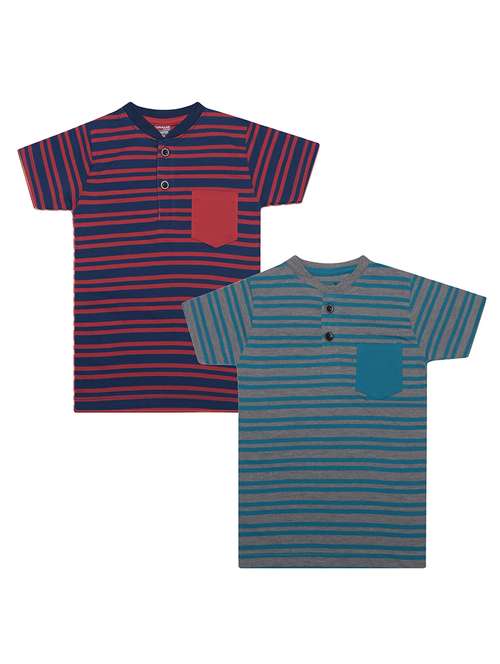 boys pack of 2 striped henley neck t-shirt with single pocket