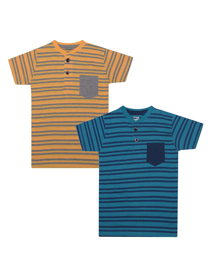 boys pack of 2 striped henley neck t-shirt with single pocket