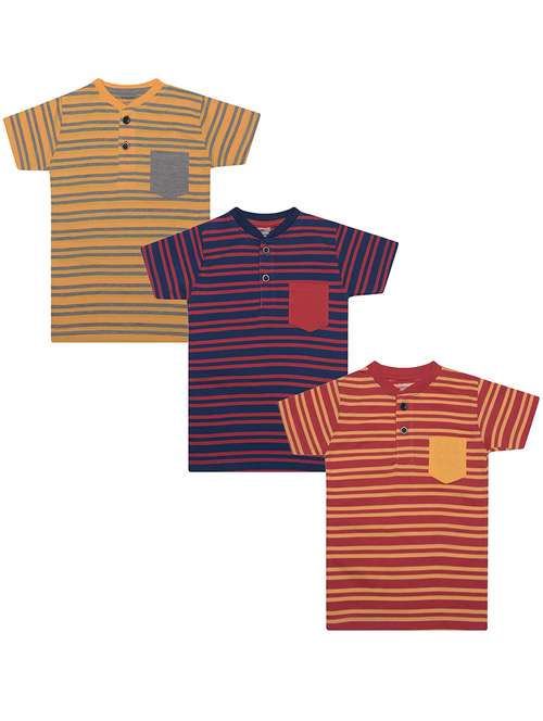 boys pack of 2 striped henley neck t-shirt with single pocket
