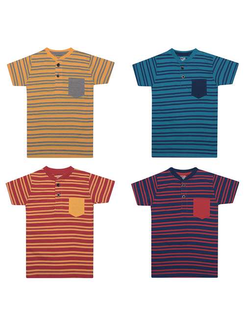 boys pack of 4 striped henley neck t-shirt with single pocket