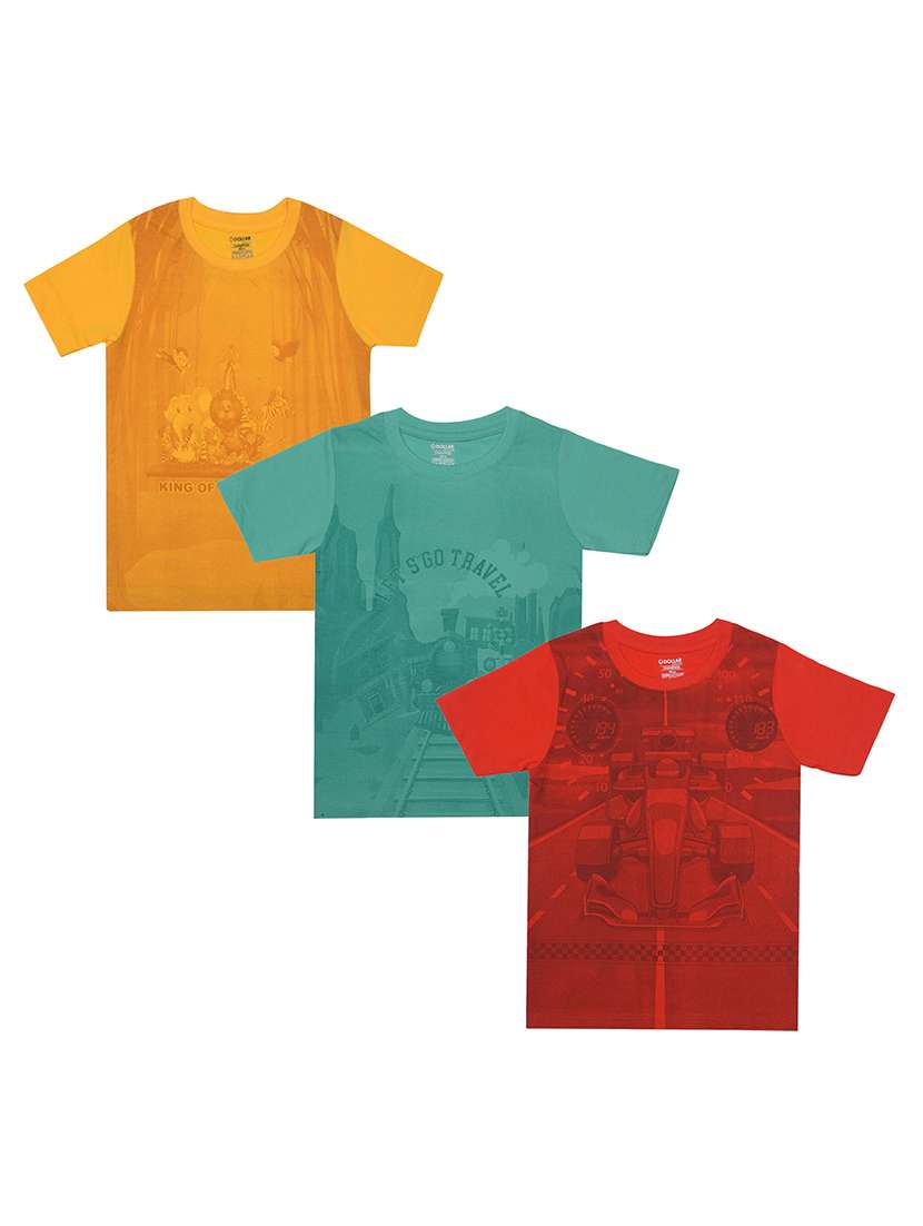 boys pack of 3 graphic printed round neck t-shirt