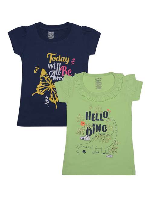 girls pack of 2 front print round neck t-shirt