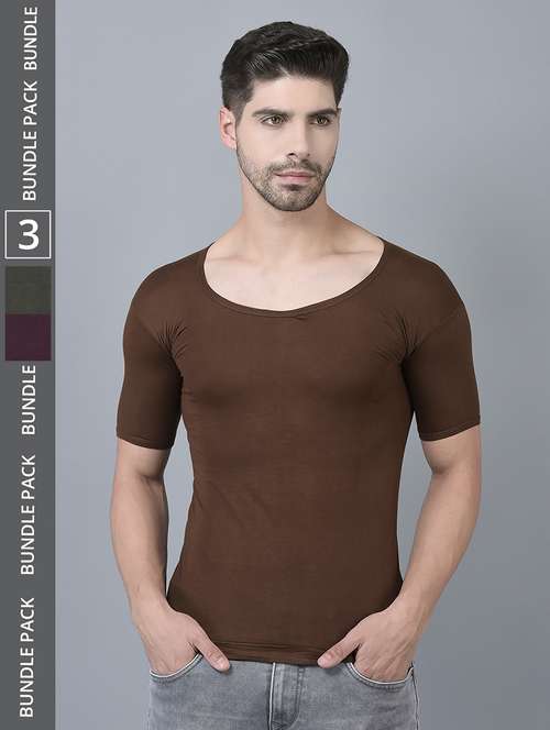 men pack of 3 solid half sleeve vest