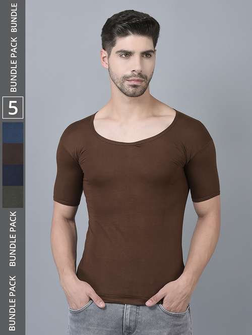 men pack of 5 solid half sleeve vest
