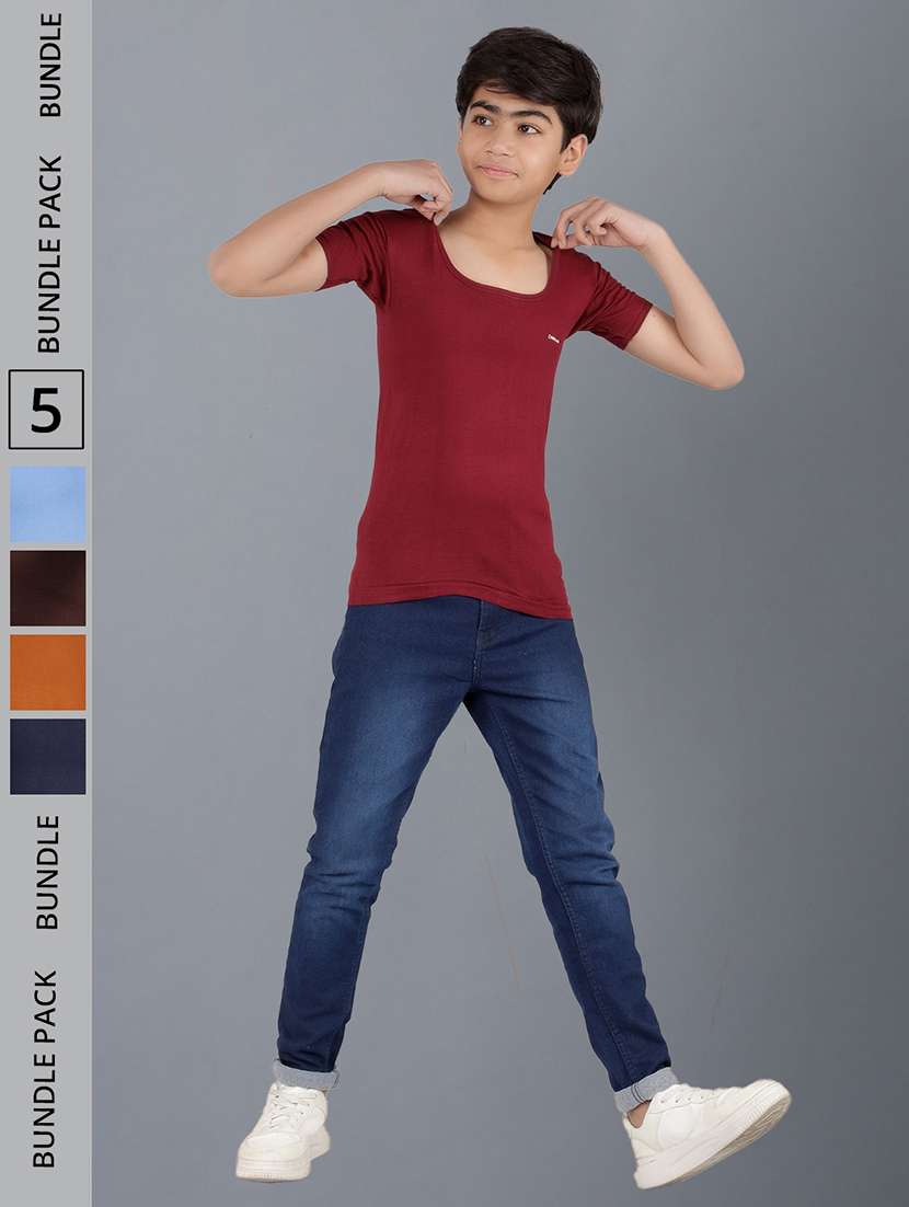 boys solid short sleeve vest combo