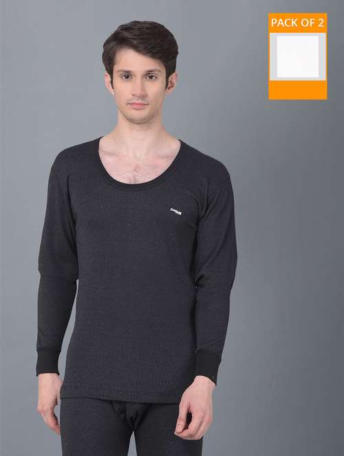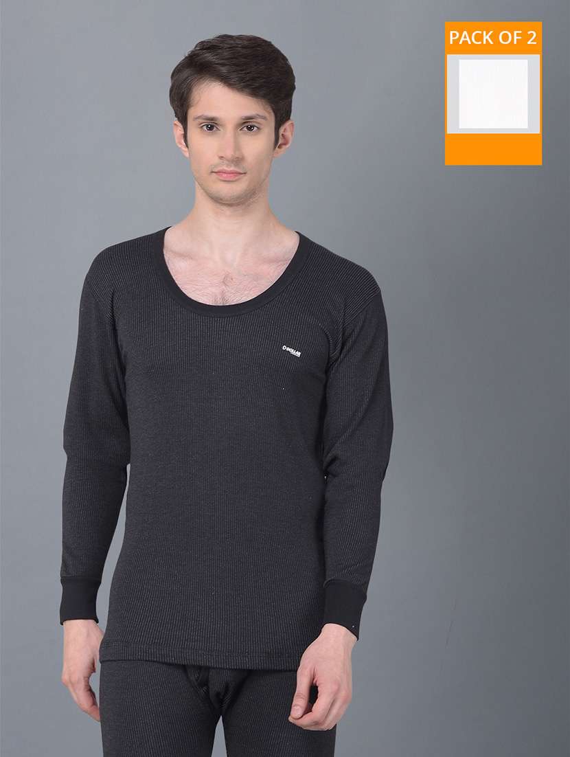 - » men pack of 2 solid scoop neck full sleeve thermal top