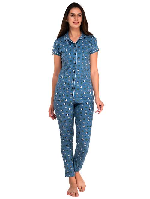 - » light blue printed detailed shirt & pyjama set
