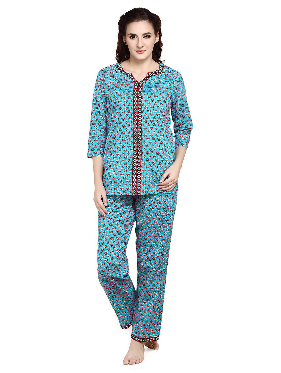 blue printed detailed top & pyjama set