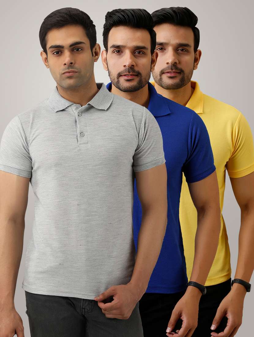 pack of 3 men's slim fit plain short sleeve polo t-shirts