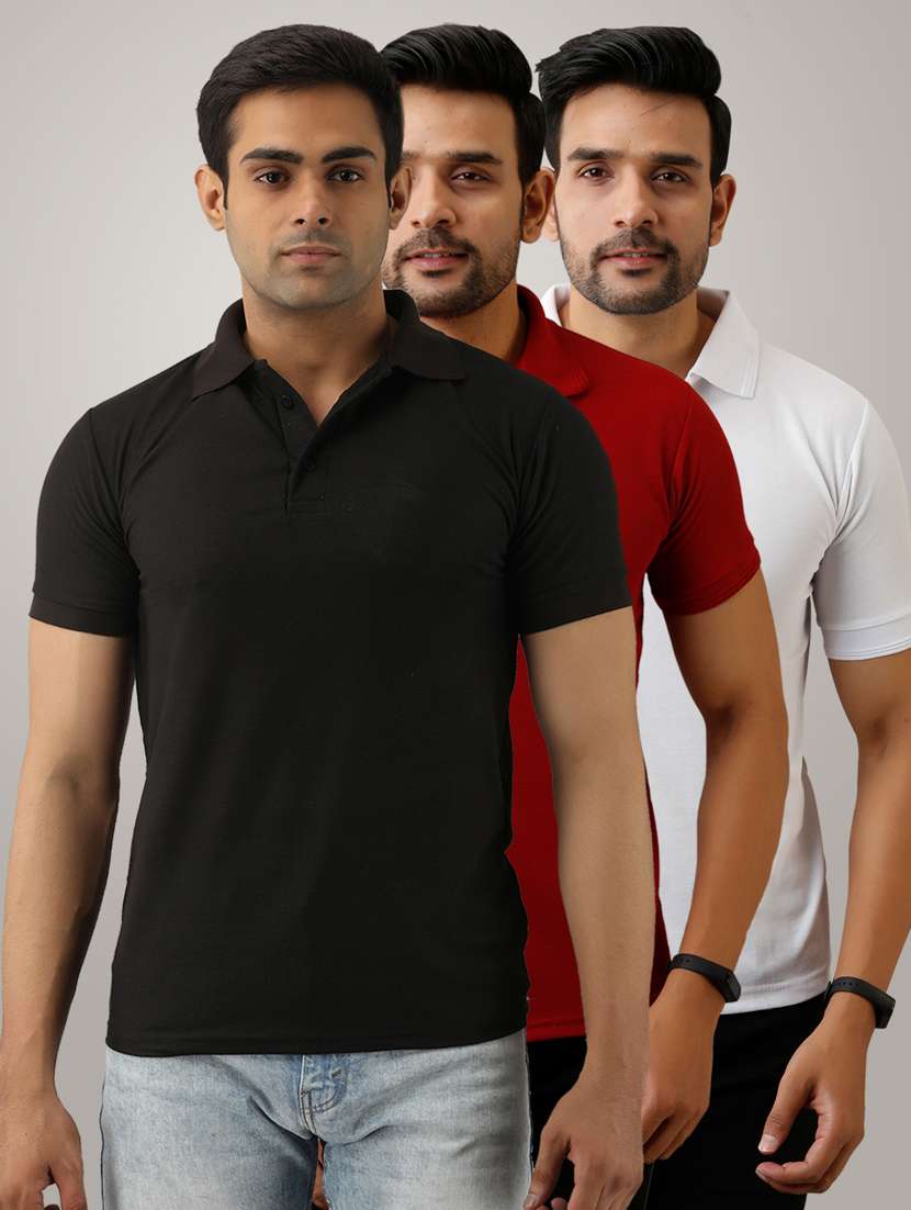 pack of 3 men's slim fit plain short sleeve polo t-shirts