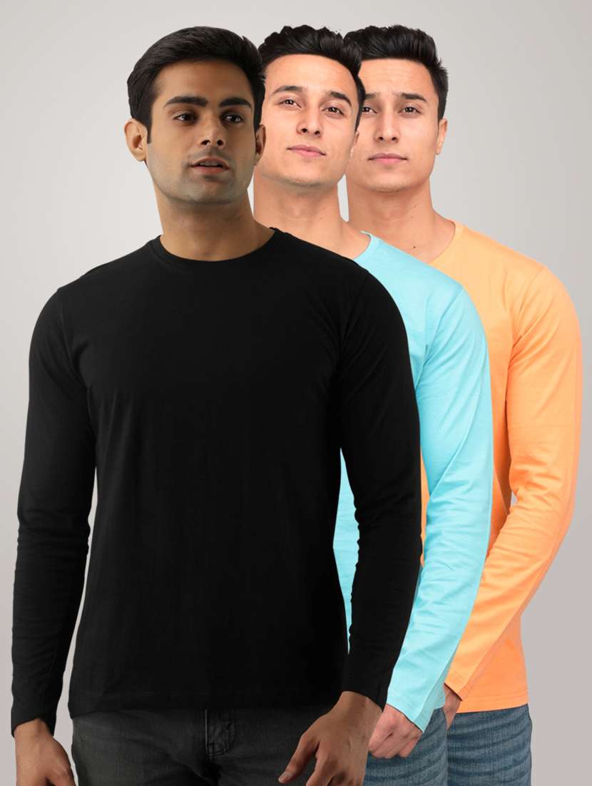 men pack of 3 solid slim fit long sleeves combo t-shirts