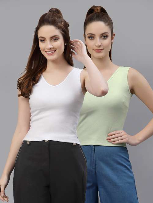 - » pack of 2 solid sleeveless crop top