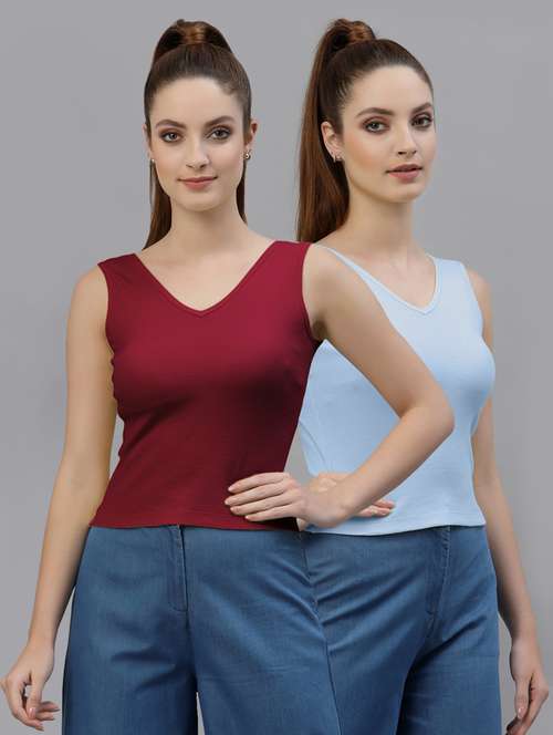 pack of 2 multi colored sleeveless crop top