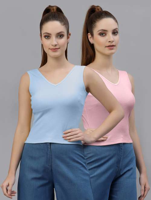 pack of 2 multi colored sleeveless crop top - 20645062 - Very Small Image - 1