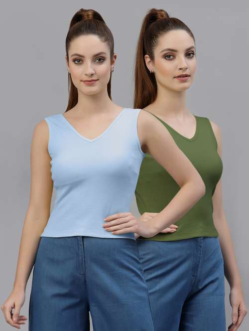 pack of 2 multi colored sleeveless crop top - 20645064 - Very Small Image - 1