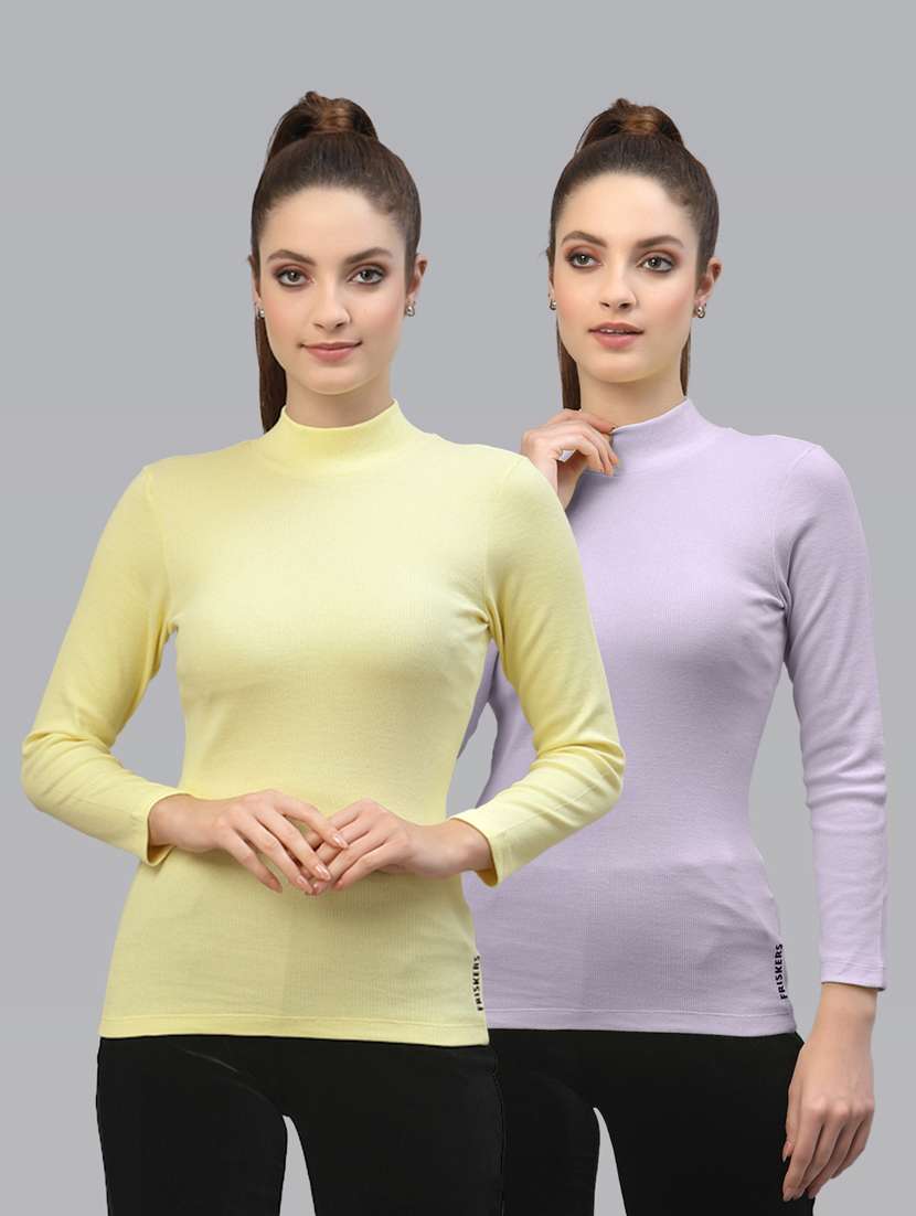 pack of 2 solid multi colored mock neck top