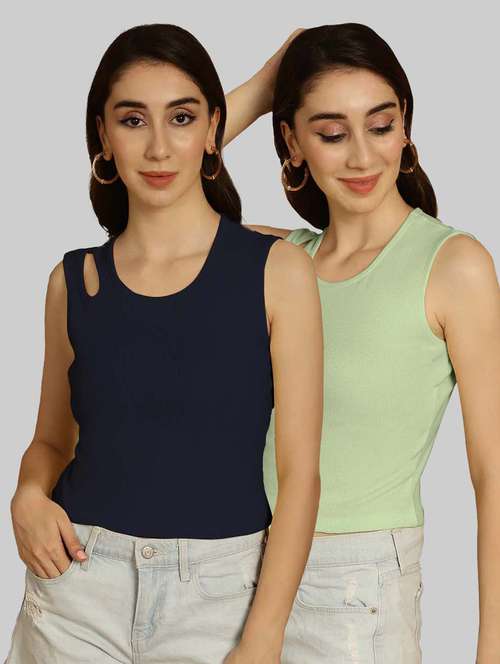 pack of 2 solid multi colored sleeveless top