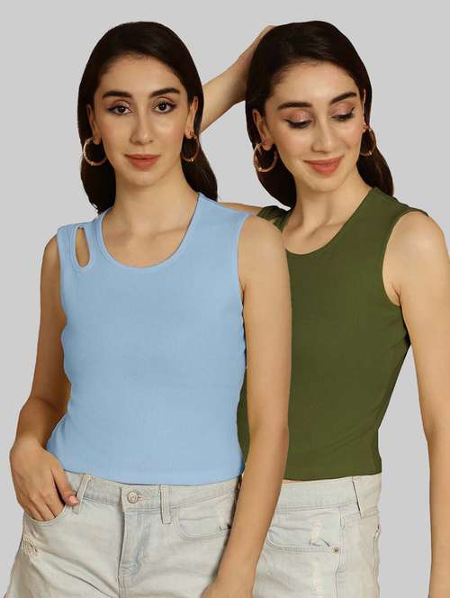 women pack of 2 multicolored solid sleeveless crop top