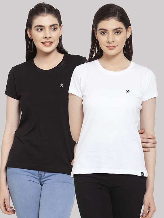 women pack of 2 solid short sleeves t-shirt