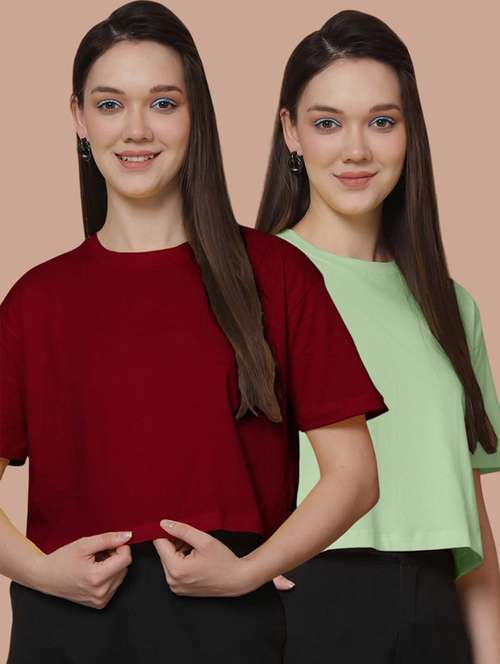 women pack of 2 solid crop t-shirt - 21370820 - Very Small Image - 1