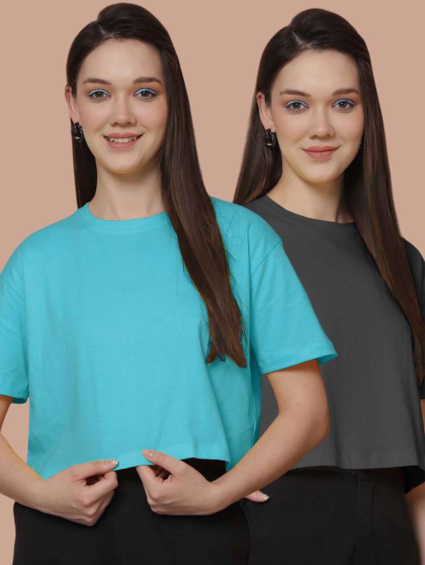 women pack of 2 solid short sleeve crop t-shirt - 21370840 - Very Small Image - 1