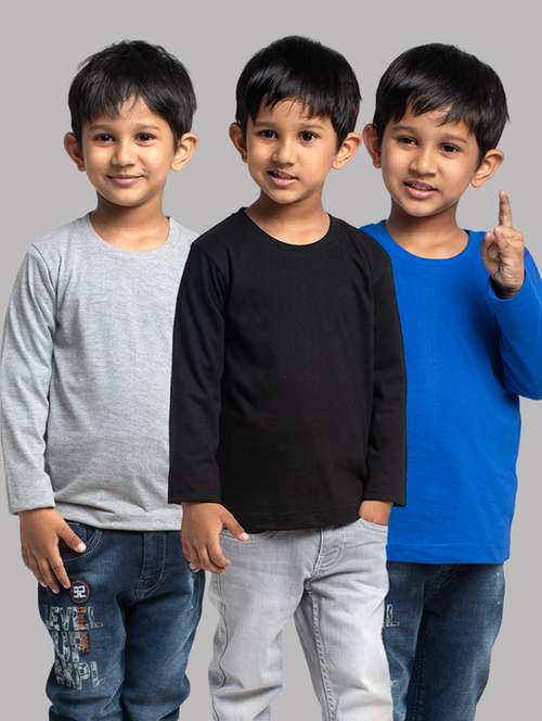 boys pack of 3 solid long sleeve regular fit t-shirt