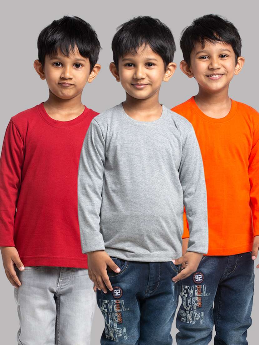boys pack of 3 solid long sleeve t-shirt
