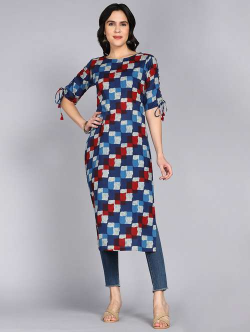 - Grab this beautiful kurta made up of cotton fabric featuring round neck designs.