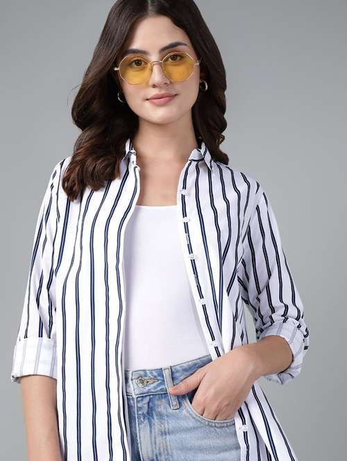 women striped collared long sleeves regular shirt - 22038602 -  Standard Image - 1 women striped collared long sleeves regular shirt - 22038602 -  Zoom Image - 1