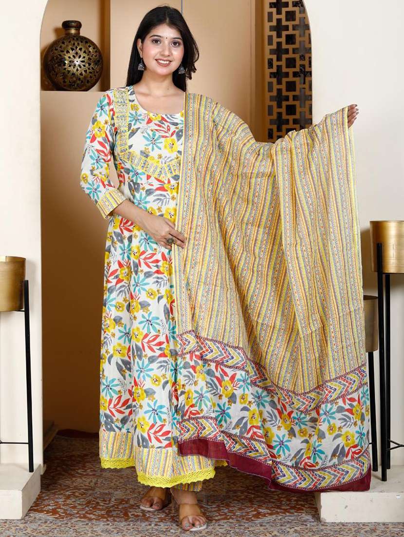 women three quarter sleeve kurta pant with dupatta set